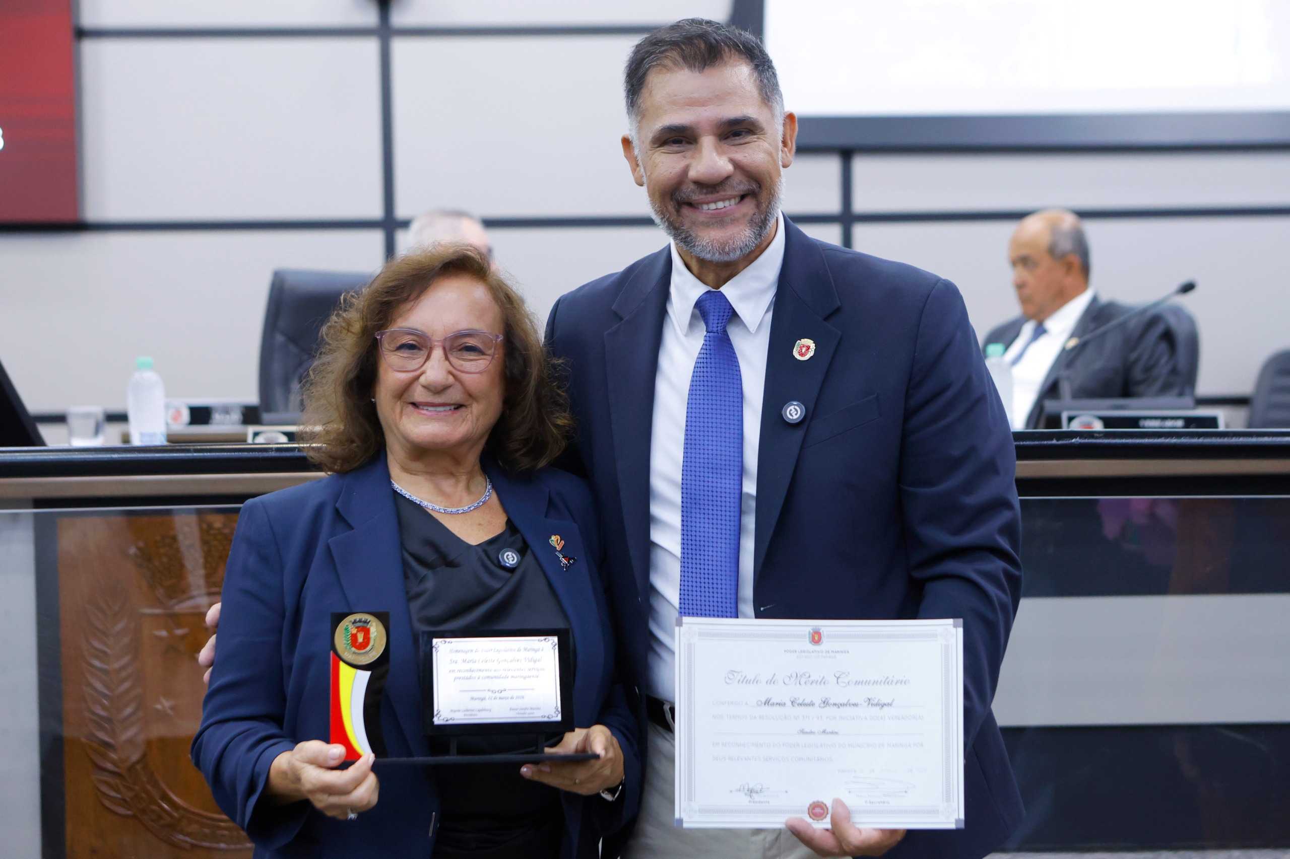 Os vereadores de Maringá irão homenagear a doutora em Genética e Melhoramento, Maria Celeste Gonçalves Vidigal, com a entrega de Brasão do Município e título do Mérito Comunitário, em reconhecimento aos relevantes serviços prestados à comunidade. A homenagem, que será realizada na sessão ordinária desta quinta-feira (12), foi proposta pelo vereador Sandro Martins.