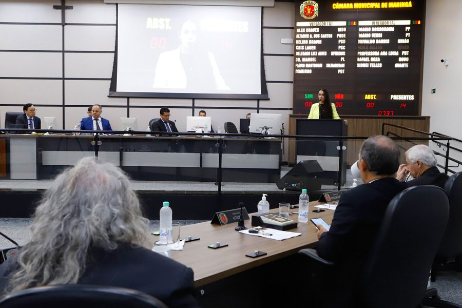 A delegada adjunta da Delegacia da Mulher de Maringá, Paloma Batista, falou aos vereadores sobre a violência contra a mulher dentro das ações e reflexões no Mês da Mulher. O convite para a participação dela na sessão desta terça-feira, 26 de março, foi da vereadora Ana Lúcia Rodrigues.