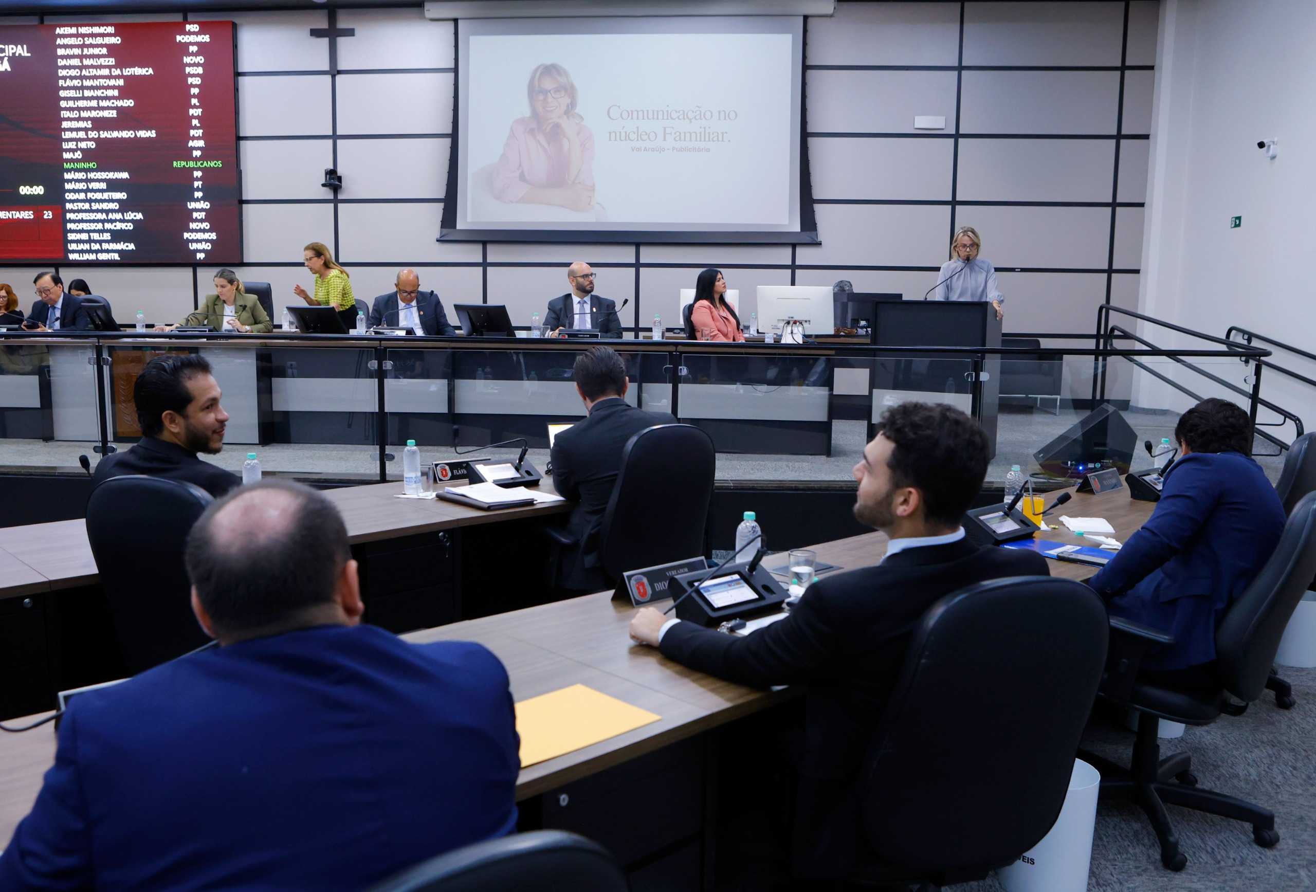 A comunicação no núcleo familiar foi tema do uso da tribuna na sessão ordinária desta terça-feira (17), com a participação da publicitária, mentora de mulheres e escritora Valdenéia Ferreira Maldonado Araújo (Val Araújo).