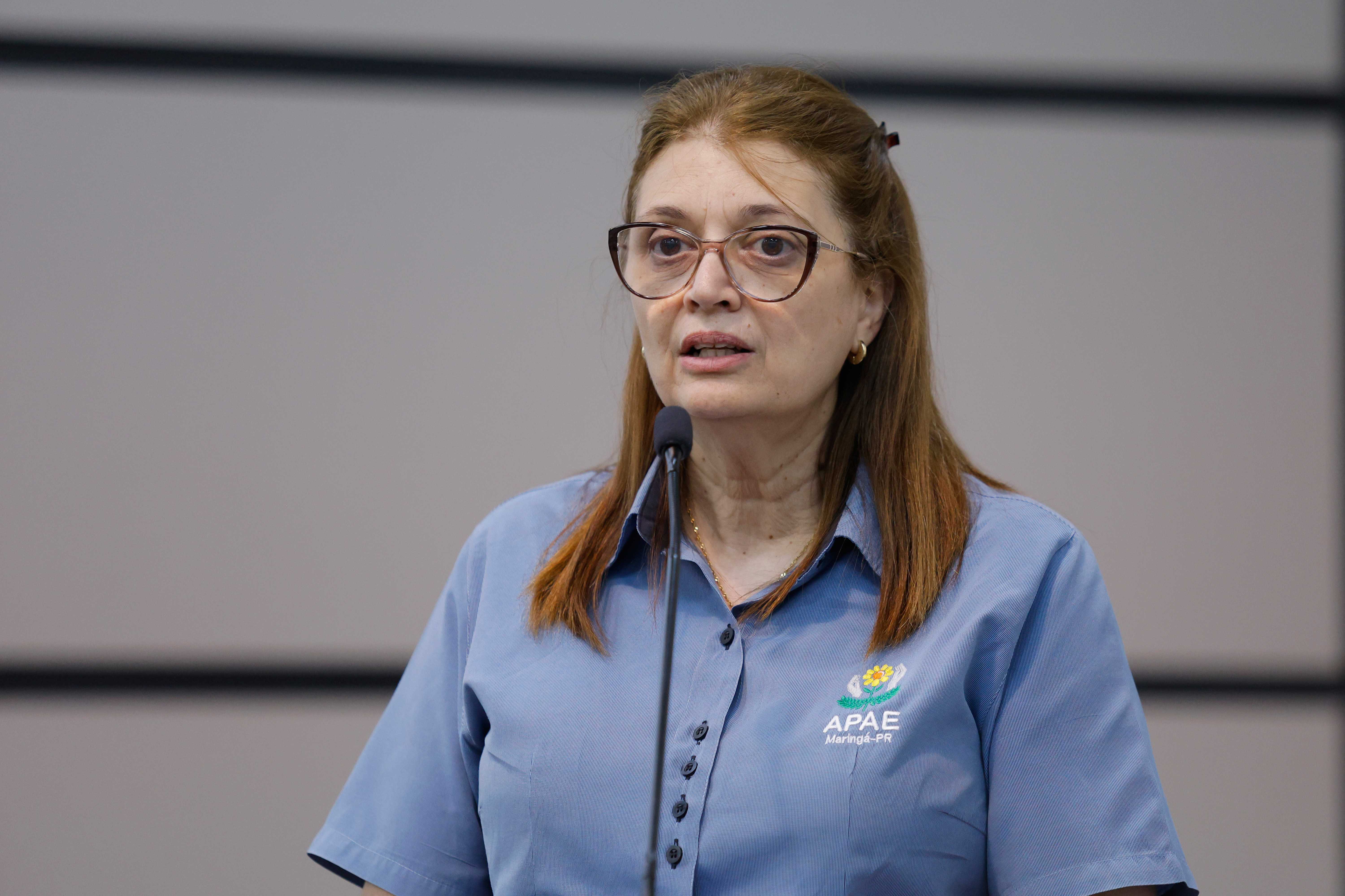 Sra. Cacilda Veronezi Jaloto Santos, Diretora Pedagógica da APAE de Maringá, falou sobre a preocupação da instituição frente ao Decreto Federal nº 12686/2025