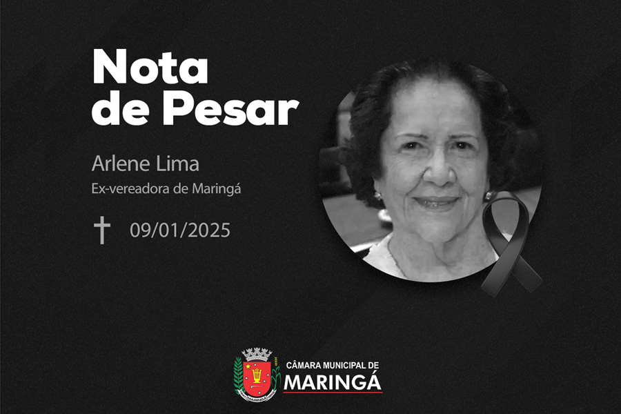 A Câmara Municipal de Maringá, em nome do presidente Mario Hossokawa, demais vereadores e servidores, manifesta profundo pesar pelo falecimento de Maria Arlene de Lima.