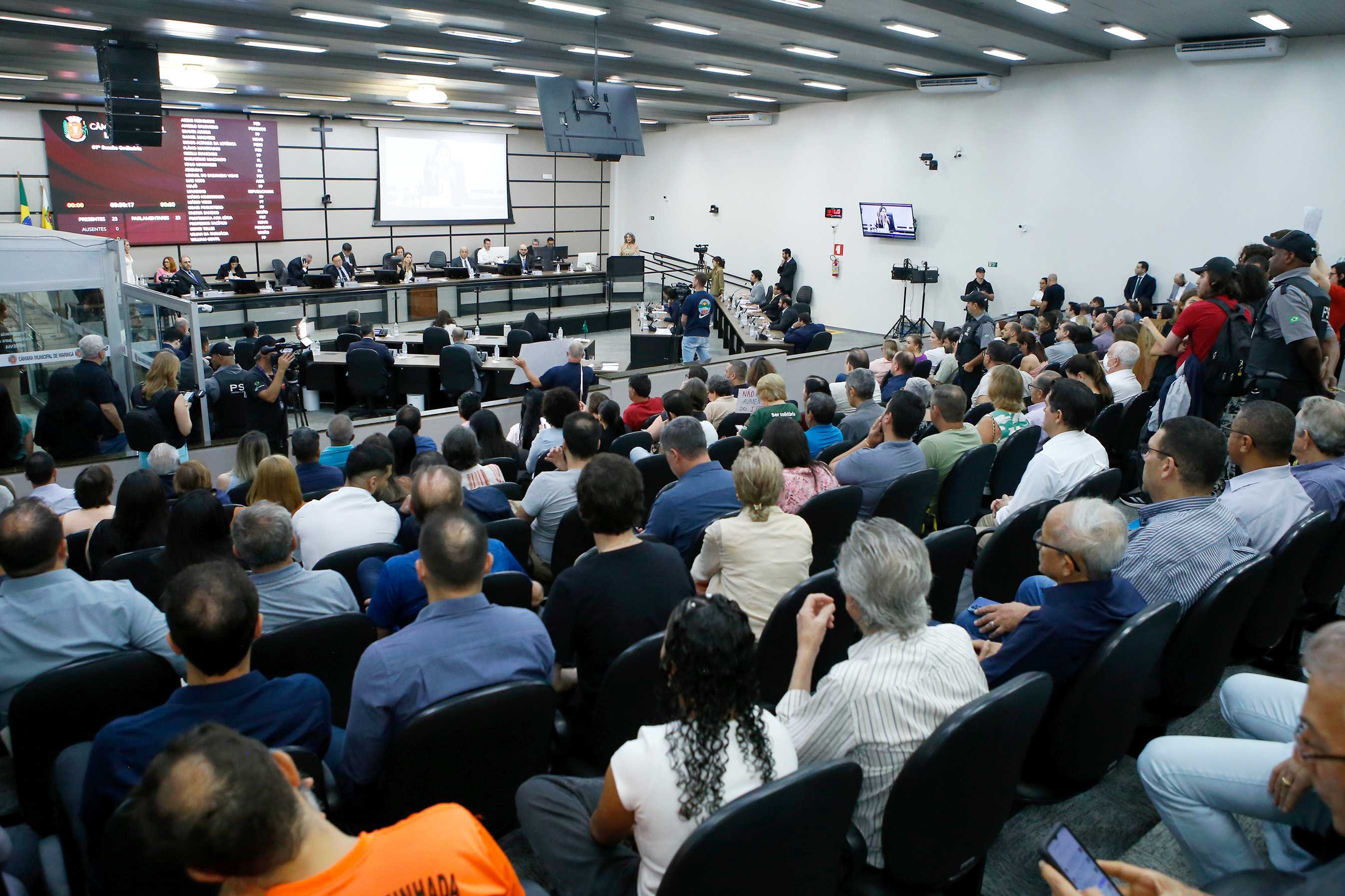 Em segunda discussão, foi aprovado, por 15 votos, o projeto de lei complementar 2.393/2025, de autoria do Poder Executivo, dispondo sobre a Planta de Valores Genéricos de Edificações e de Terrenos, sobre valores e alíquotas de tributos, bem como sobre as condições de pagamento dos respectivos créditos tributários, no exercício de 2026.